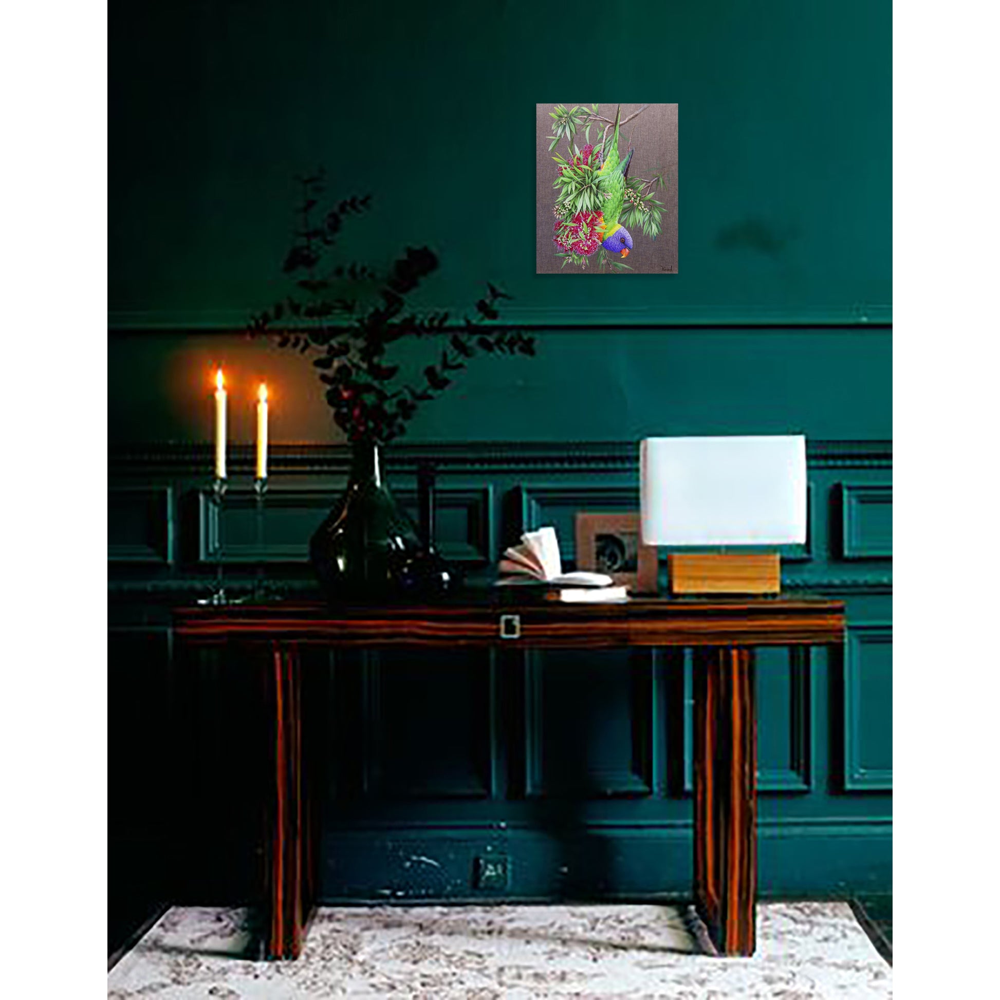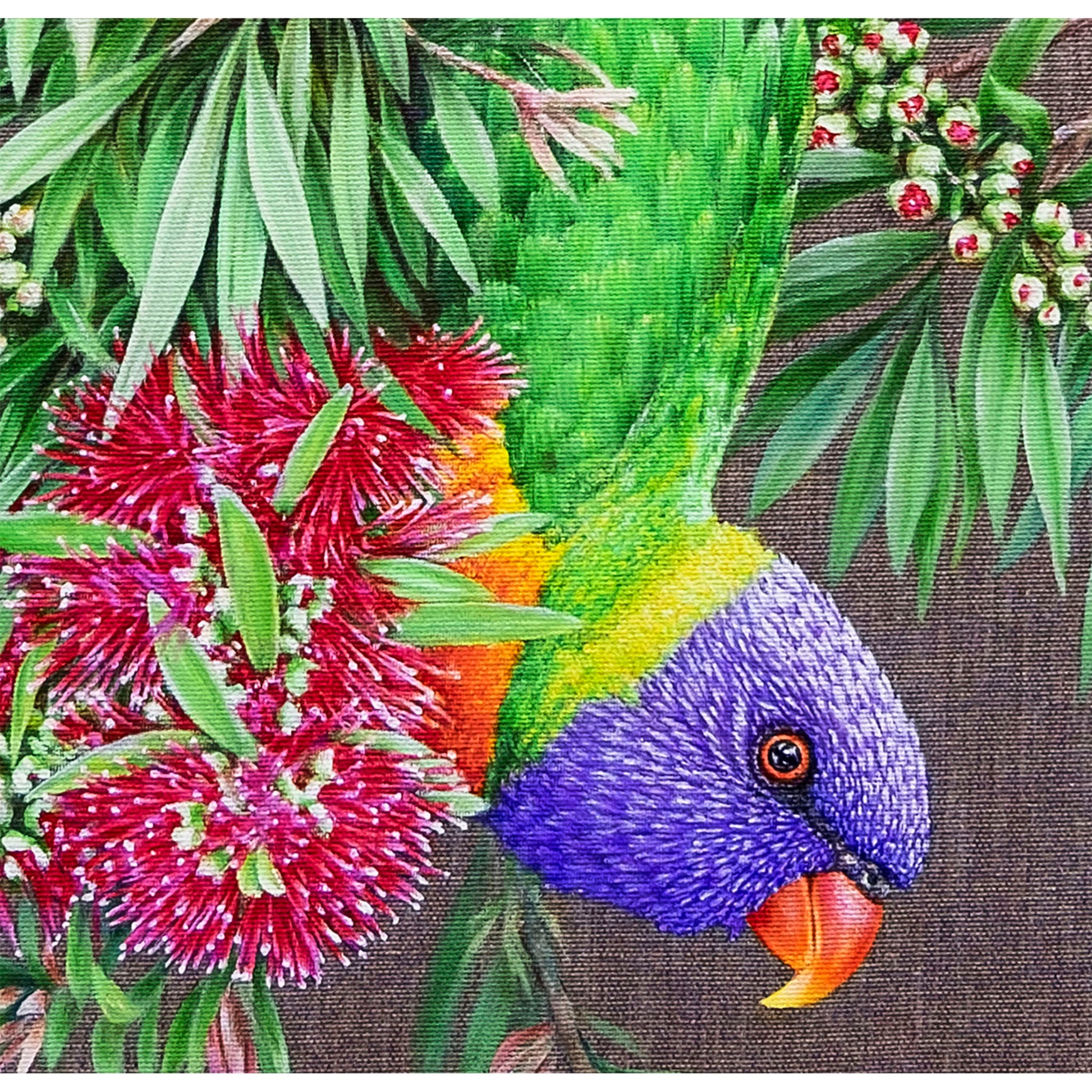 Añade color y vida a tu espacio con "¡Soy muy guapo!", un óleo original firmado por Anastasia Woron. Este cuadro de realismo detallado captura un loro arcoíris entre flores, combinando colores vibrantes y texturas delicadas. Ideal para coleccionistas y amantes del arte que buscan piezas únicas y listas para colgar.