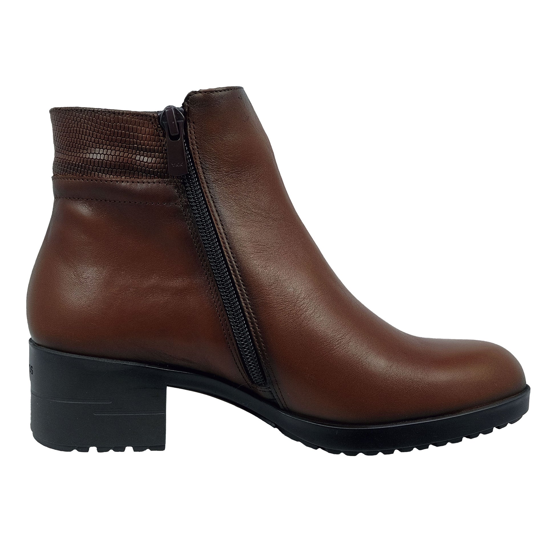 Los Fluchos Aliss F1367 son botines elegantes y cómodos, fabricados en piel natural marrón con tacón de 4.5 cm. Su diseño combina estilo y confort gracias a la tecnología Dynergy y Shock Absorber, que proporcionan una pisada suave y estable. Perfectos para la temporada de otoño e invierno, con cremallera lateral que facilita el calce y plantilla de gel extraíble.