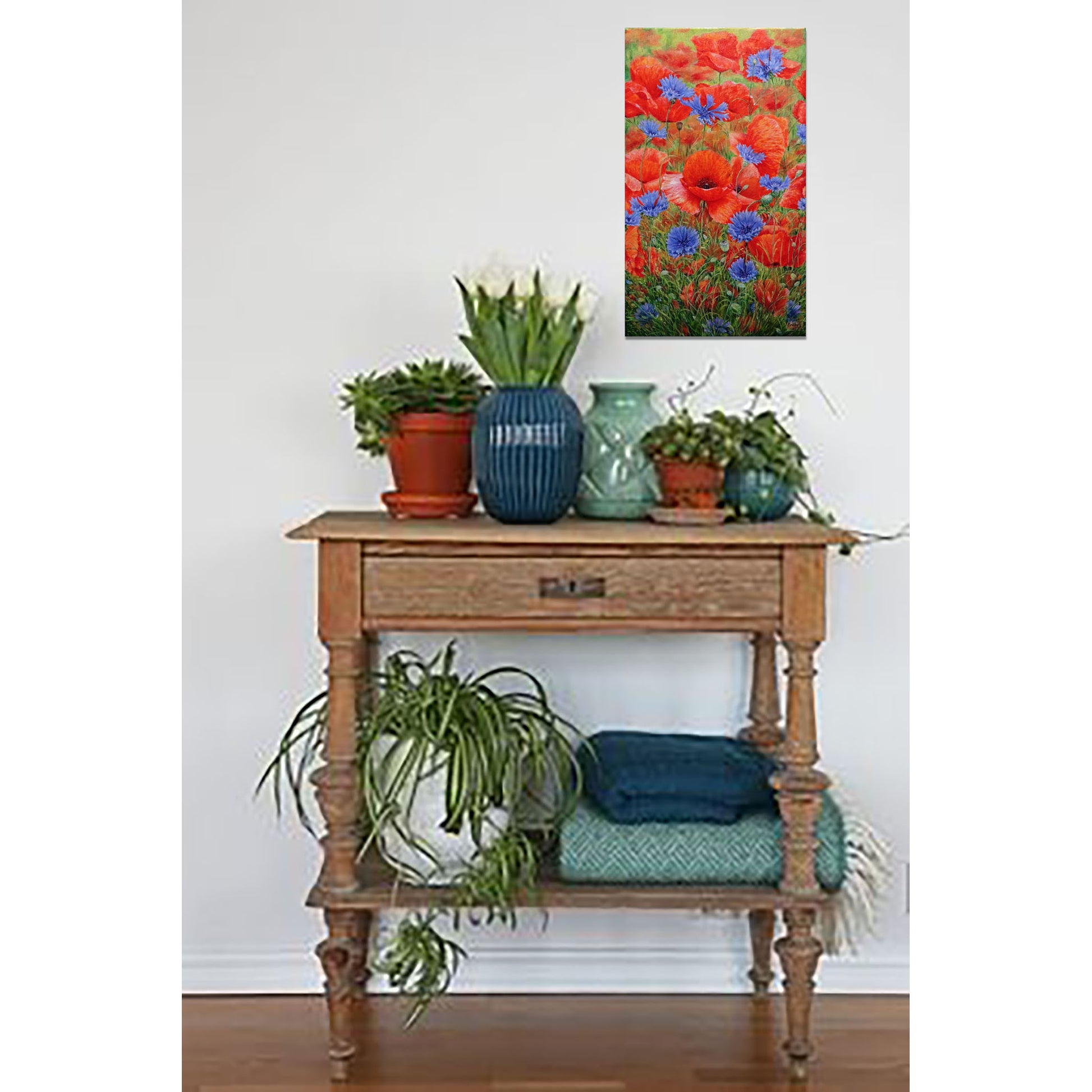 Anastasia Woron: "Poppies with Cornflowers" – Original Oil Painting 46x27 cm (2022)