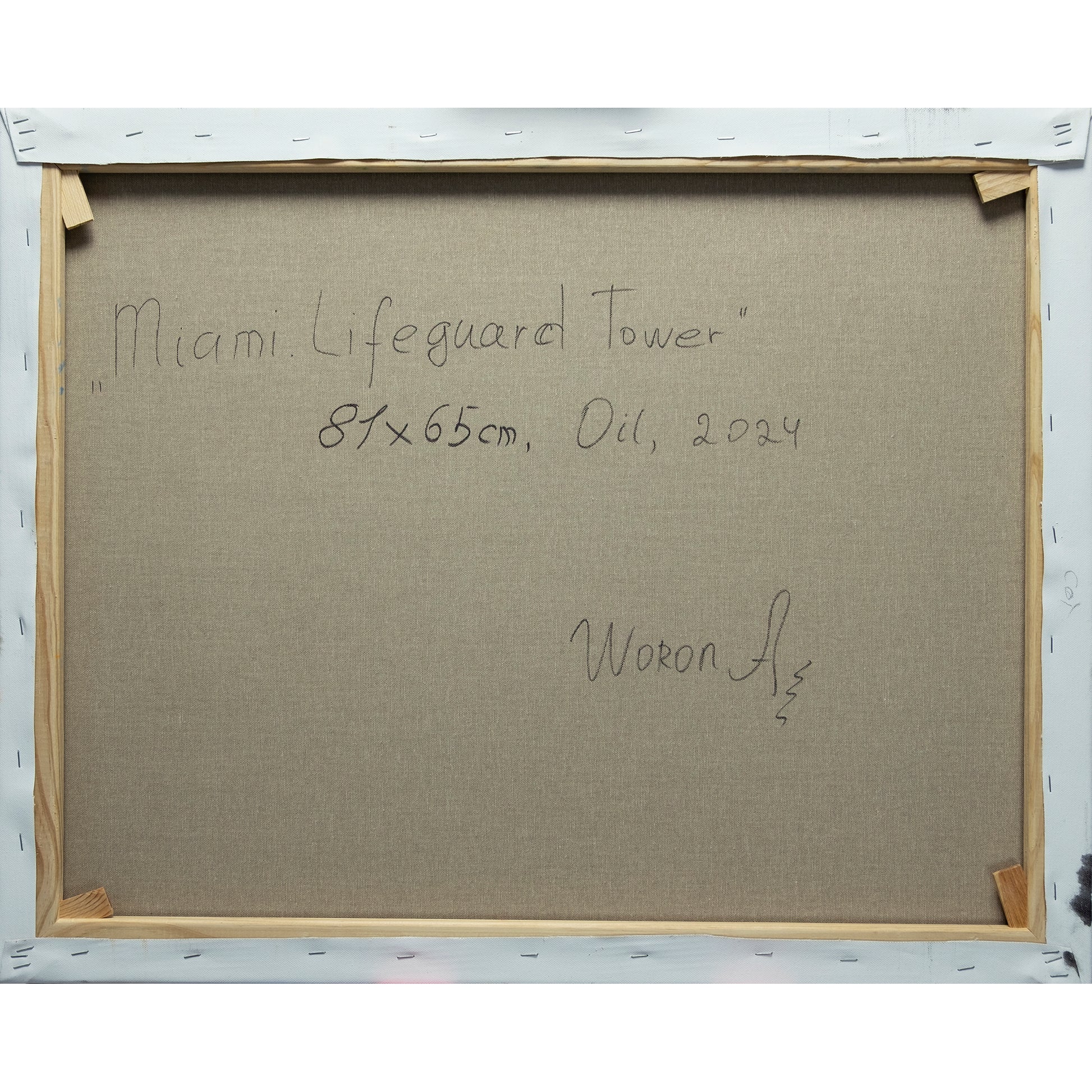 Anastasia Woron - Original Signed Oil Painting 2024: Miami Lifeguard Tower 81x65cm