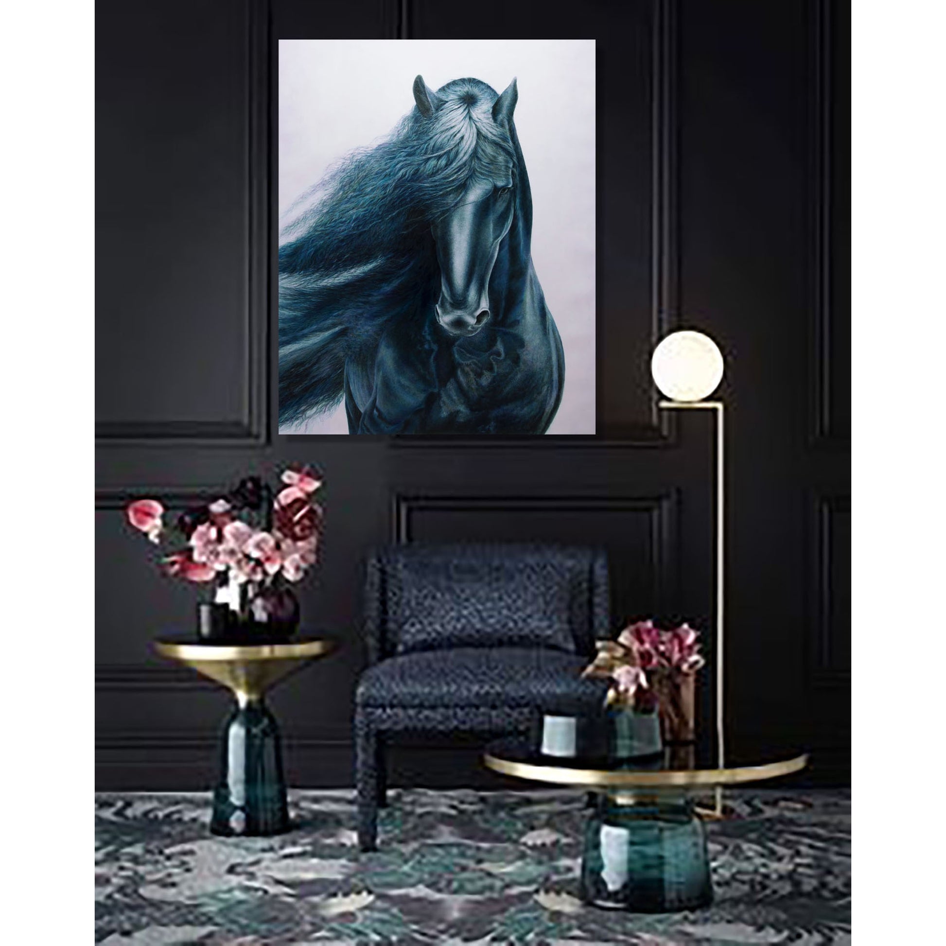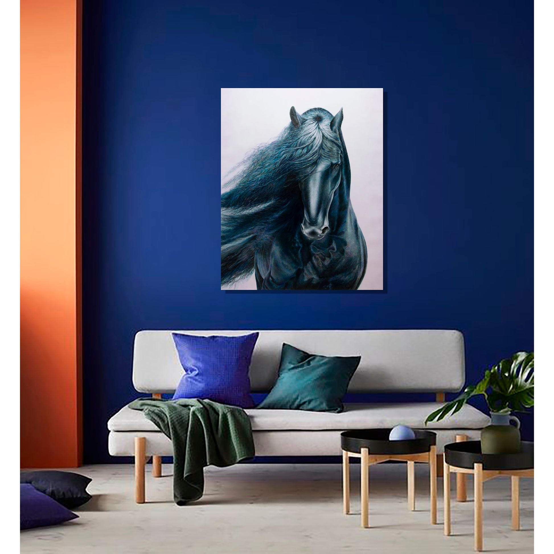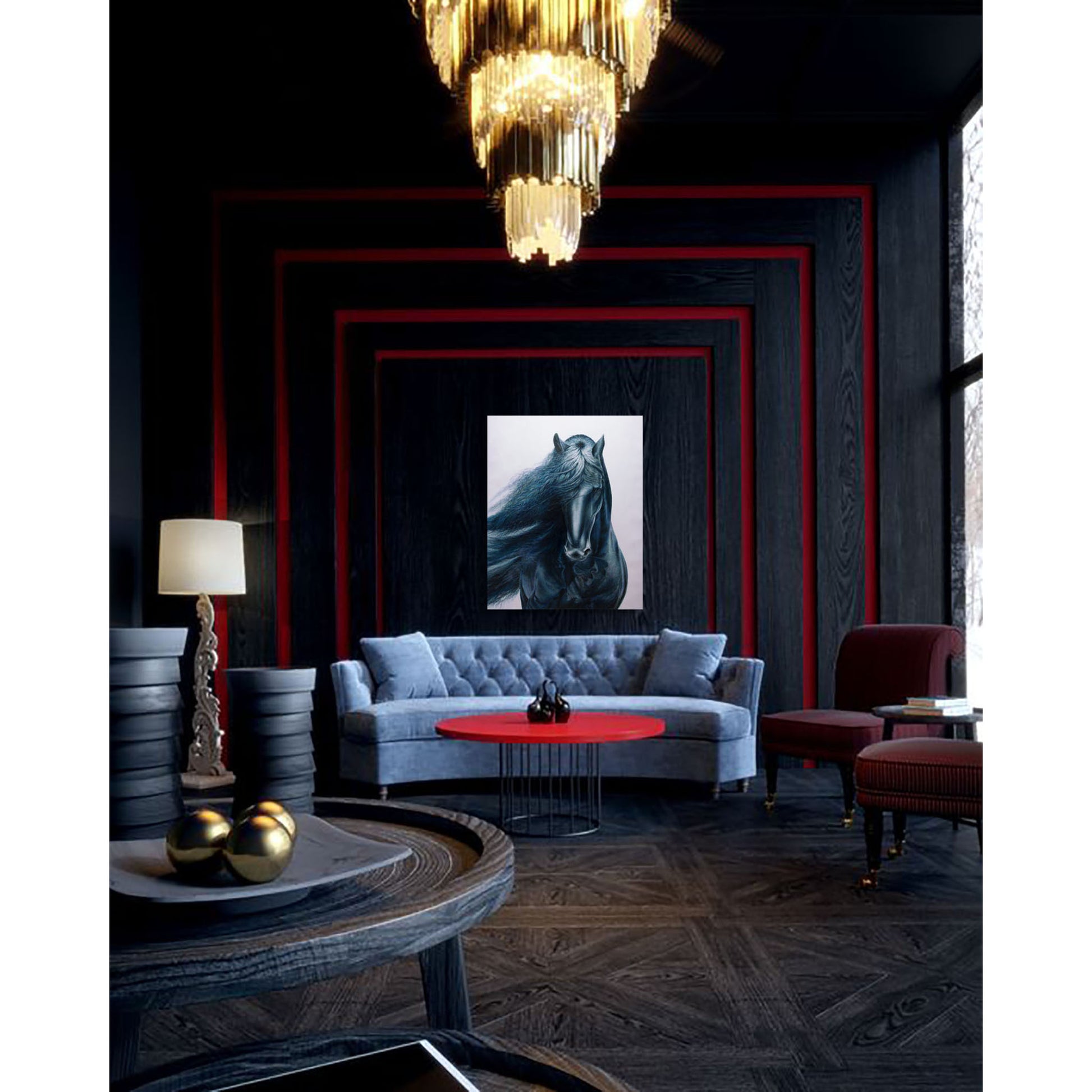 “El Eclipse Negro” es una poderosa obra original firmada por Anastasia Woron, que captura la magia y elegancia de un caballo negro en movimiento, con una fuerza visual impresionante.