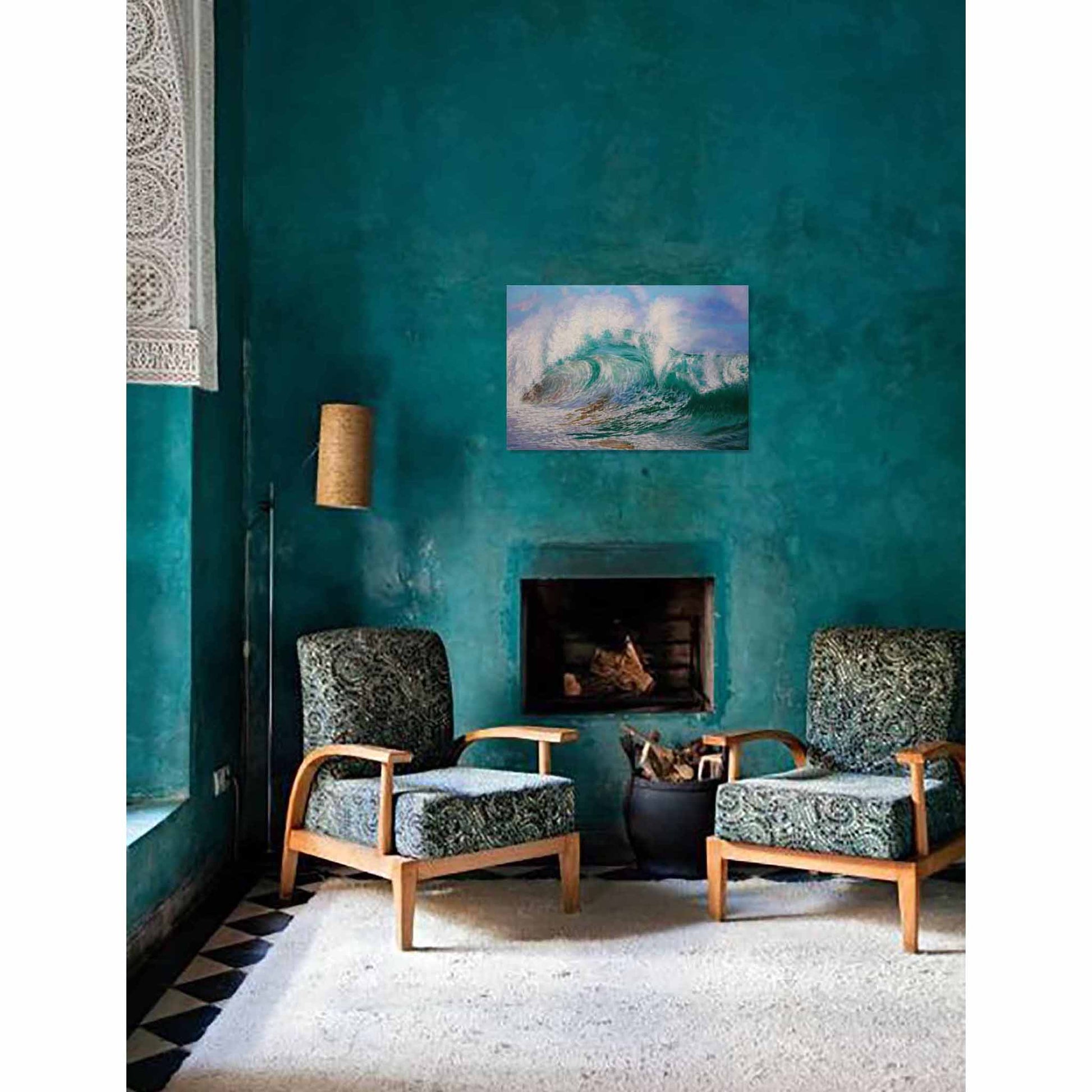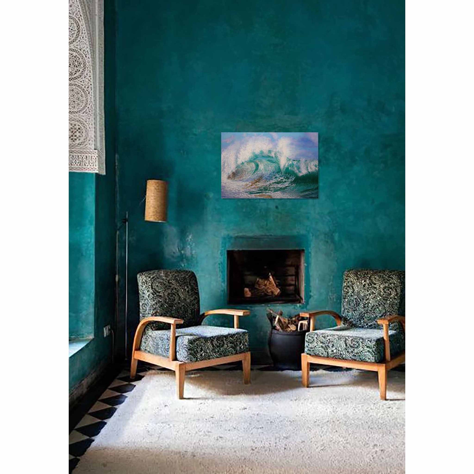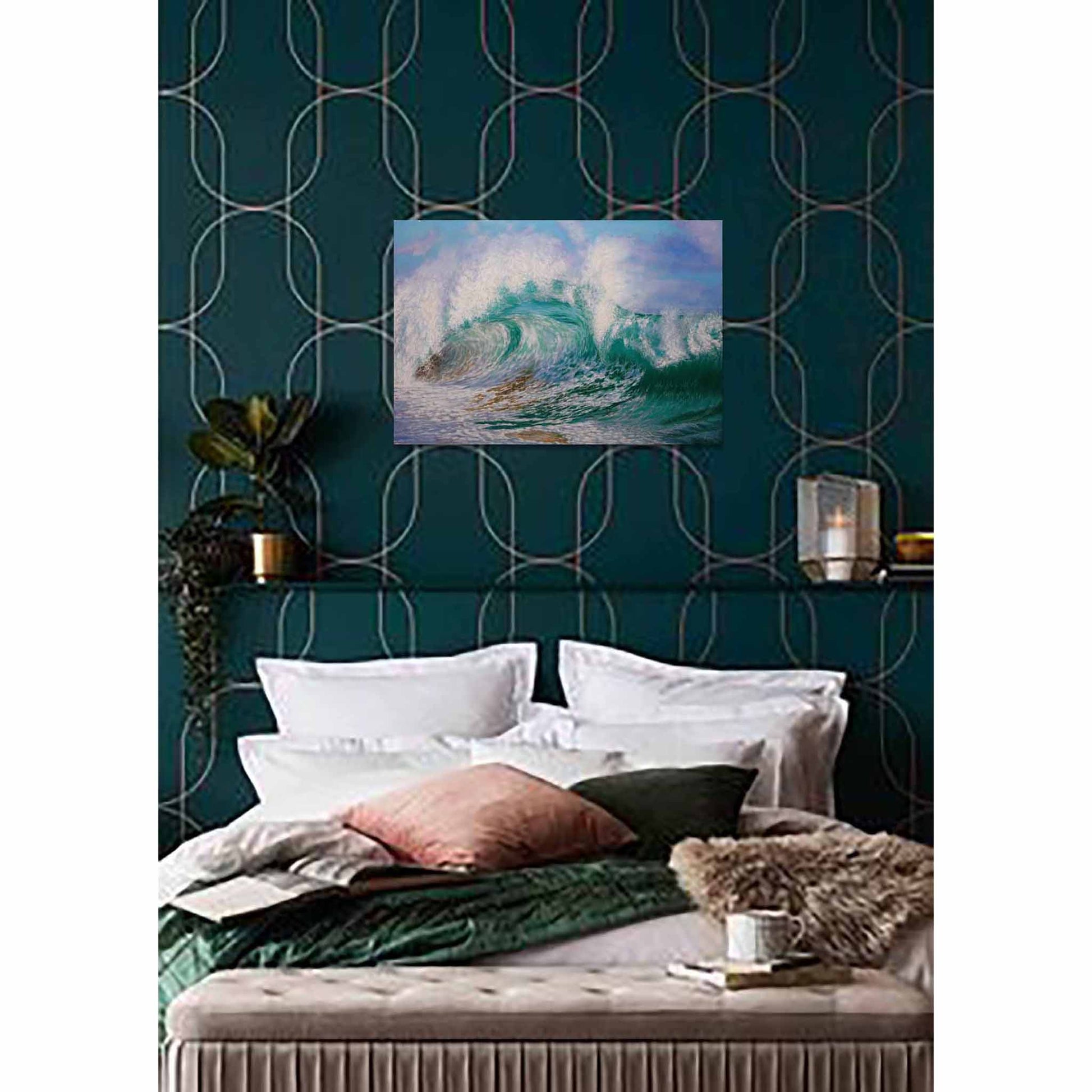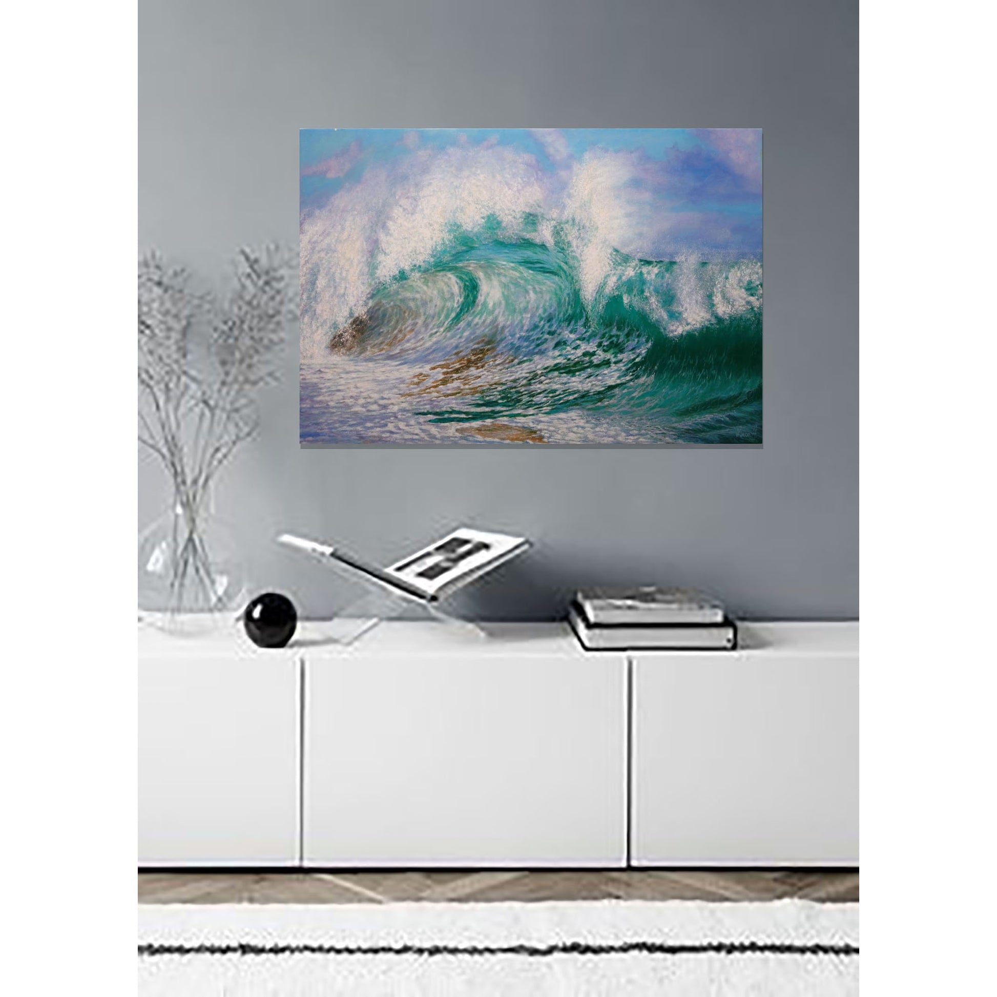 En esta obra, Anastasia Woron investiga la fuerza dinámica del mar y la relación entre movimiento y luz. A través de una pincelada expresiva y una construcción cromática basada en verdes turquesa y blancos vibrantes, capta el instante en que la energía del océano se transforma en forma y materia. La composición transmite intensidad y profundidad espacial, reforzando su lenguaje visual de raíz impresionista contemporánea.