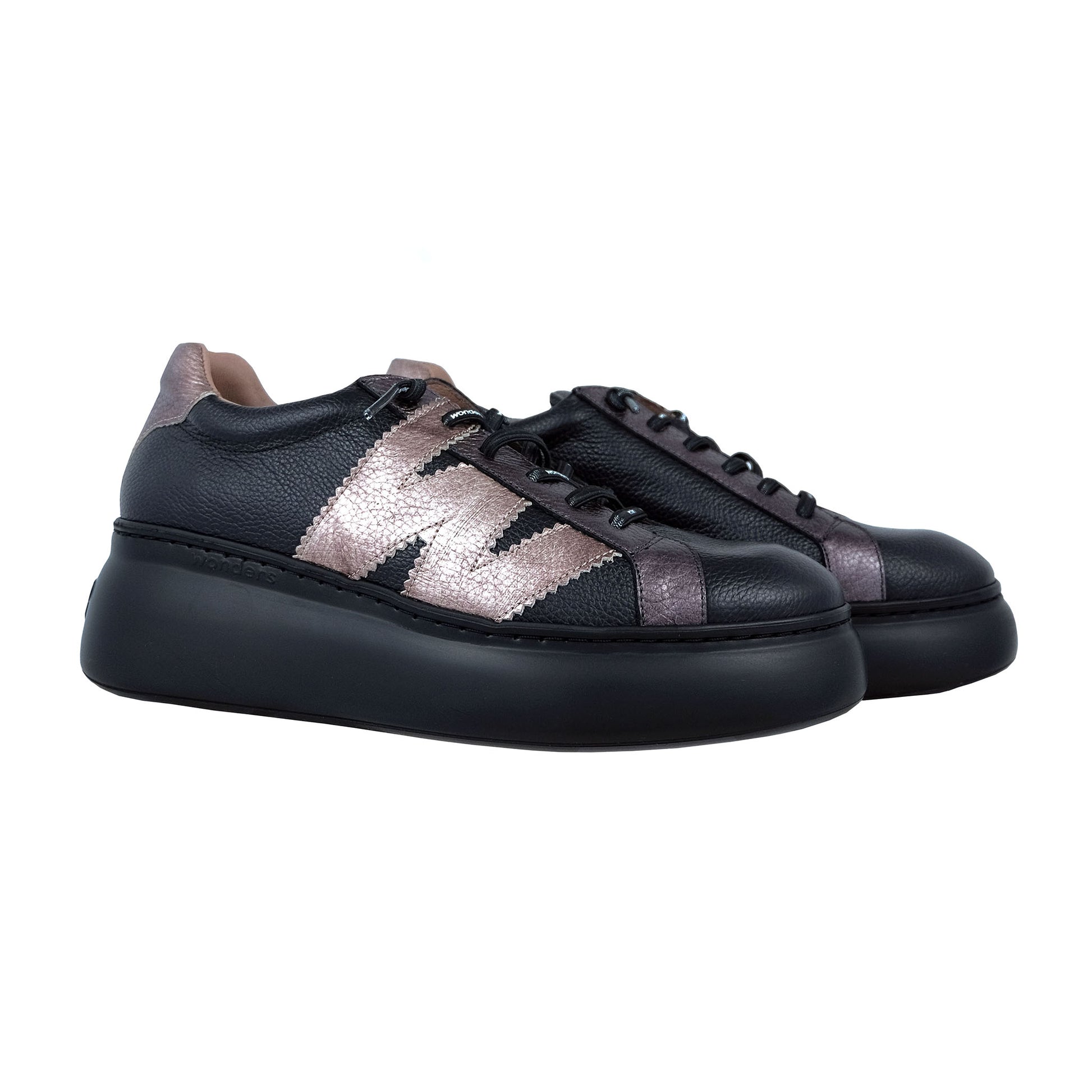 Wonders Zurich A-2670 combina estilo y comodidad en un diseño moderno con plataforma ligera. Fabricados en piel negra de alta calidad, ofrecen sujeción con cordones elásticos y plantilla extraíble de gel. Perfectos para caminar cada día con ligereza, elegancia y confort.